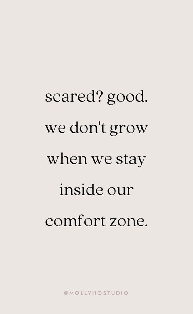 "Scared? Good. We don't grow when we stay inside our comfort zone." — Unknown
