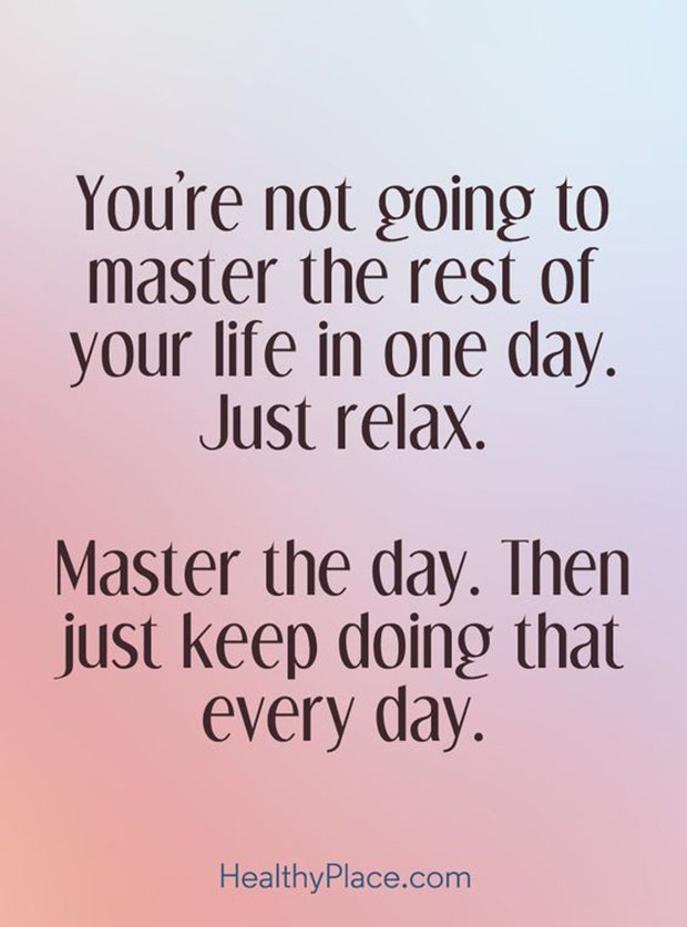 "You're not going to master the rest of your life in one day. Just relax. Master the day. Then just keep doing that every day." — Unknown