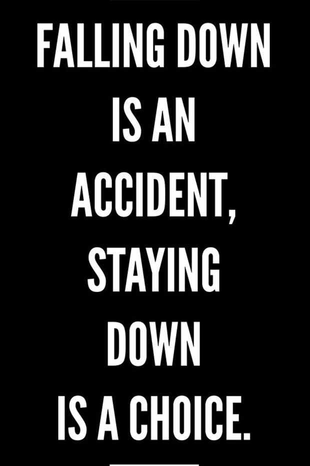 "Falling down is an accident, staying down is a choice." — Unknown