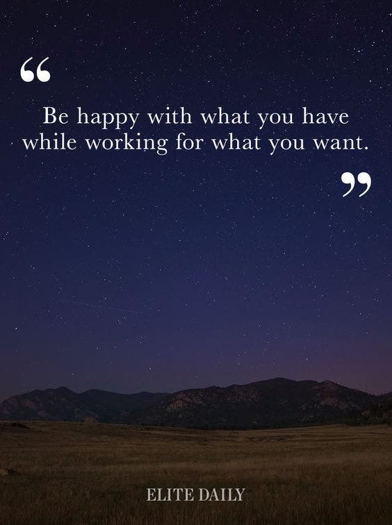 "Be happy with what you have while working for what you want." —​ Unknown