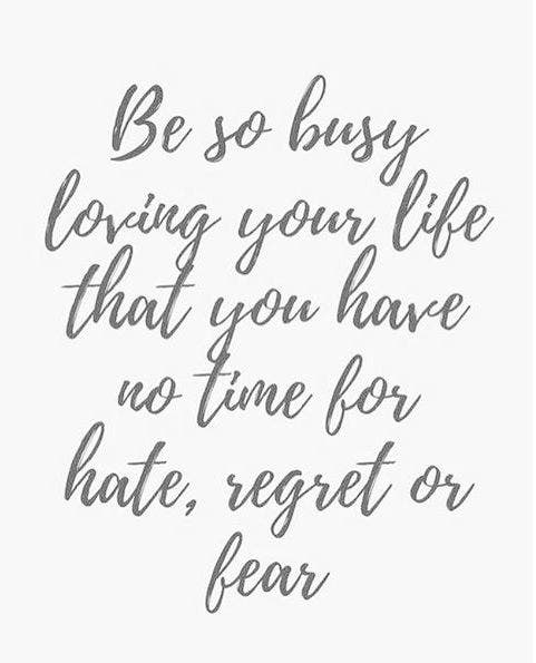 "Be so busy loving your life that you have no time for hate, regret or fear." — Unknown