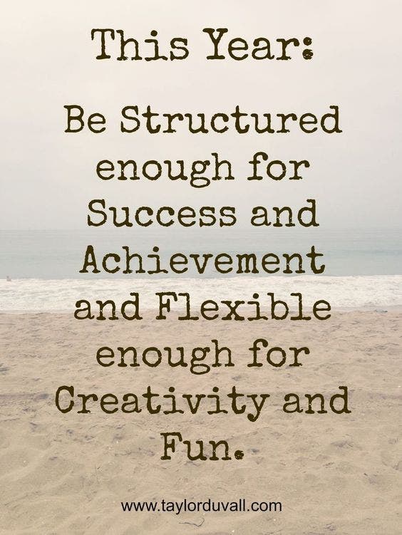 "This year, be structured enough for success and achievement and flexible enough for creativity and fun." — Taylor Duvall
