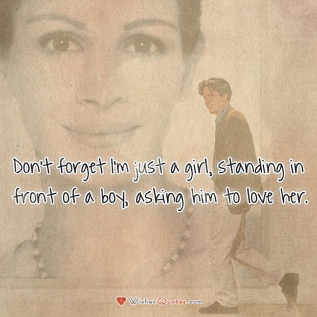 "Don't forget I'm just a girl, standing in front of a boy, asking him to love her." — Anna Scott, Notting Hill
