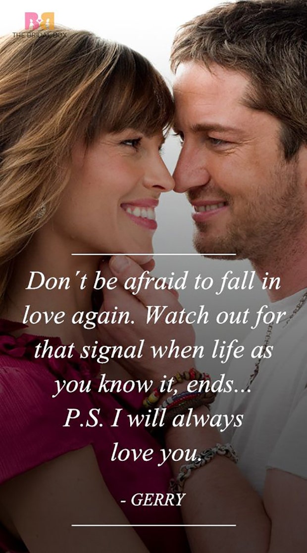 "Don't be afraid to fall in love again. Watch out for that signal when life as you know it, ends... P.S. I will always love you." — Gerry, P.S. I Love You