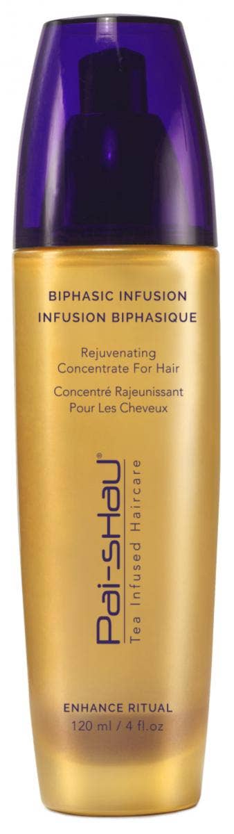 Also called "liquid gold" to those in the know, Pai-Shau's Biphasic Infusion is an oil-free daily treatment for the hair and scalp that leaves your hair insanely smooth and shiny. The Signature Tea Complex locks inside the cuticle to nourish the hair's structure, attracting moisture and shine.