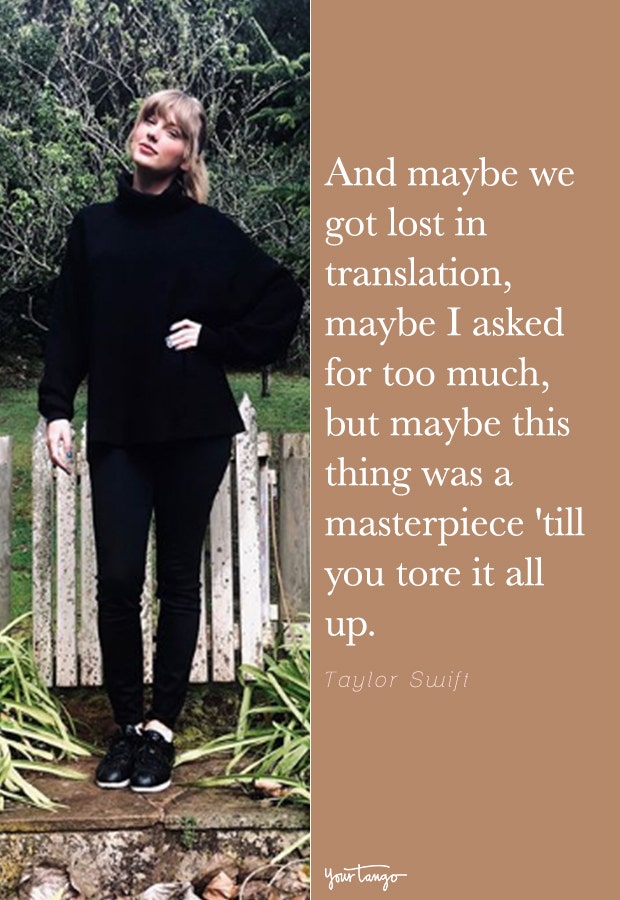 "And maybe we got lost in translation, maybe I asked for too much, but maybe this thing was a masterpiece 'till you tore it all up." — All Too Well
