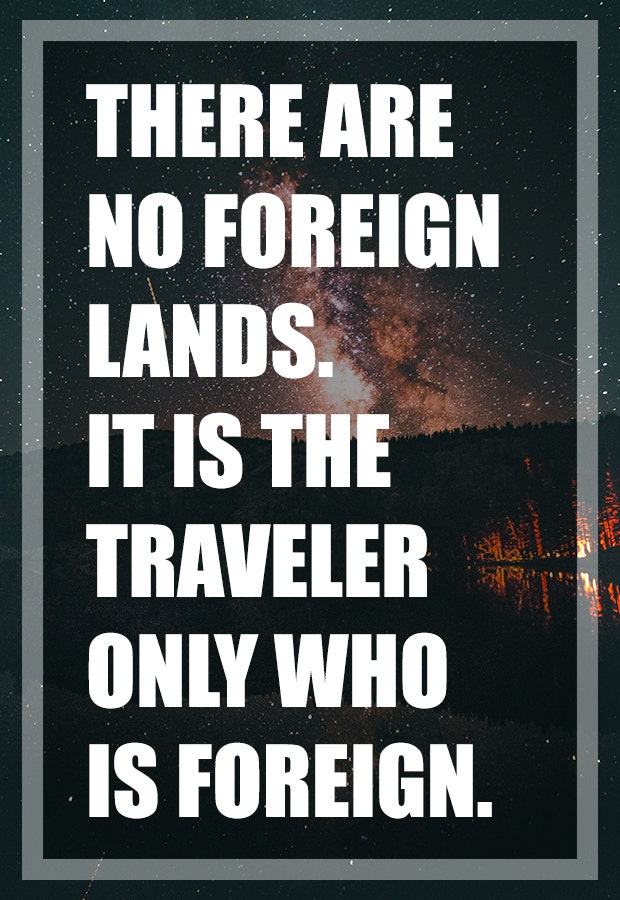 "There are no foreign lands. It is the traveler only who is foreign."— Robert Louis Stevenson