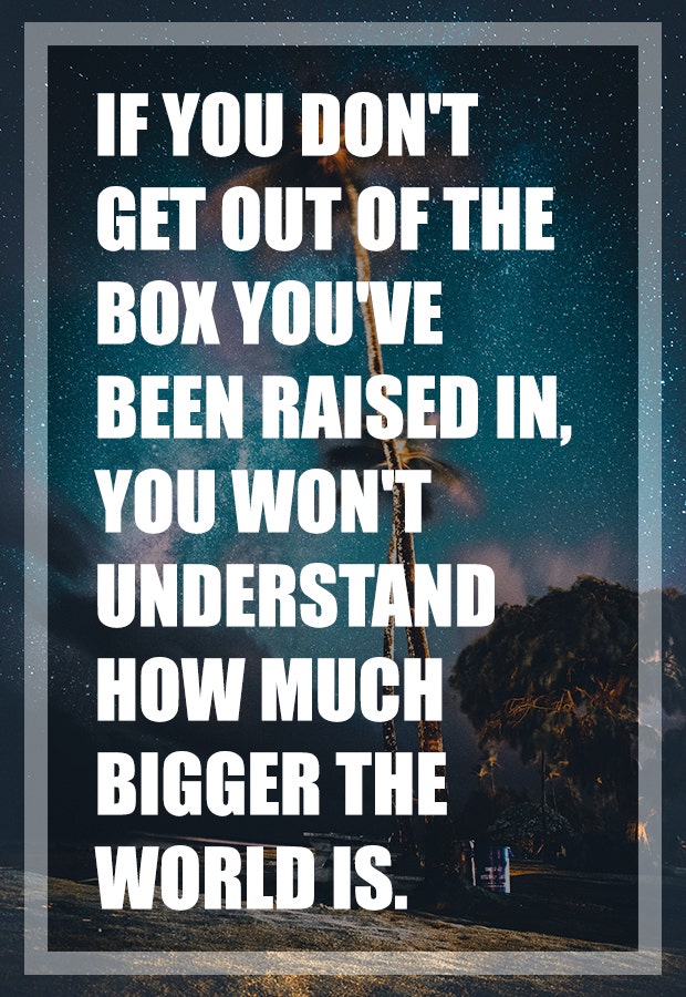 "If you don't get out of the box you've been raised in, you won't understand how much bigger the world is."— Angelina Jolie