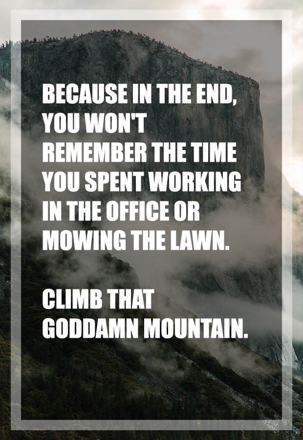 "Because in the end, you won't remember the time you spent working in the office or mowing the lawn. Climb that goddamn mountain."— Jack Kerouac