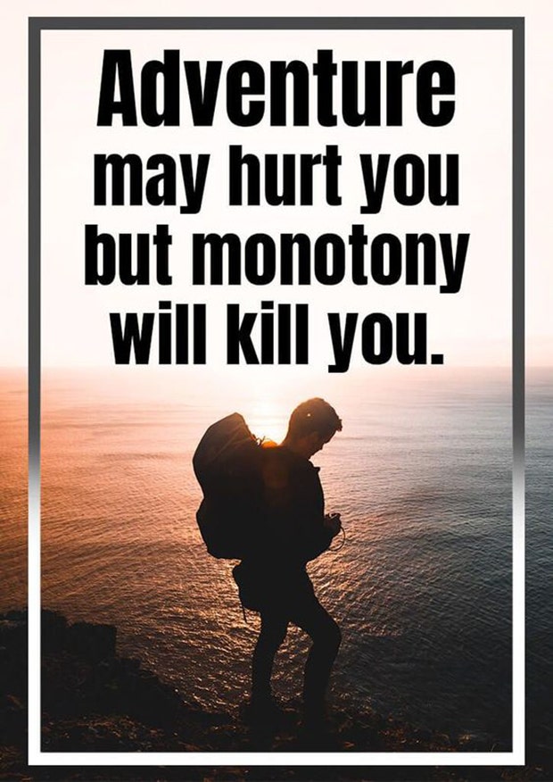 "Adventure may hurt you but monotony will kill you." — Unknown