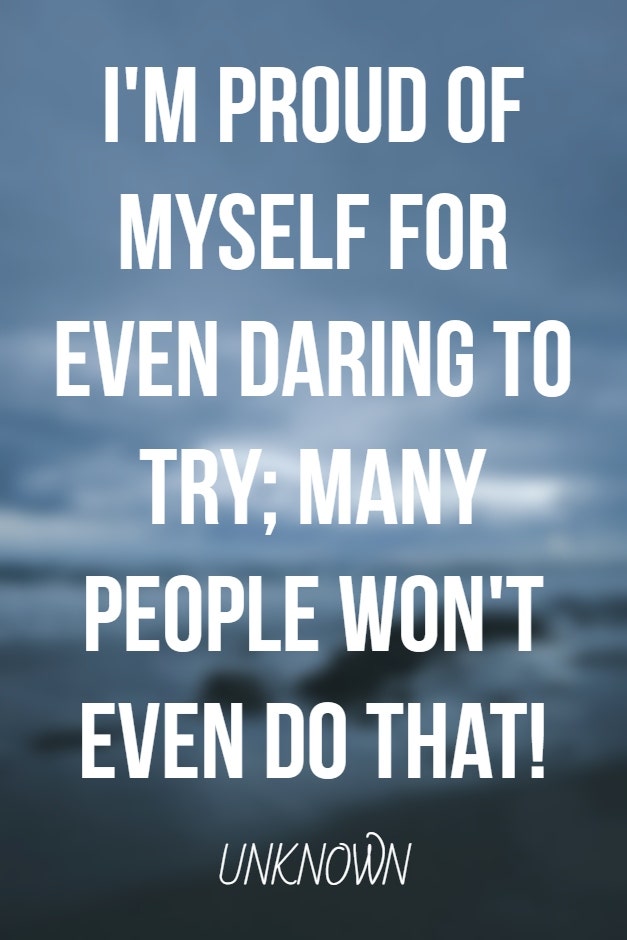 "I'm proud of myself for even daring to try; many people won't even do that!" — Unknown