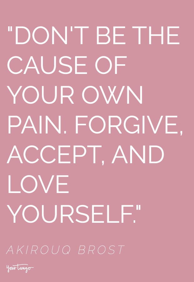 "Don't be the cause of your own pain. Forgive, accept, and love yourself." — Akirouq Brost