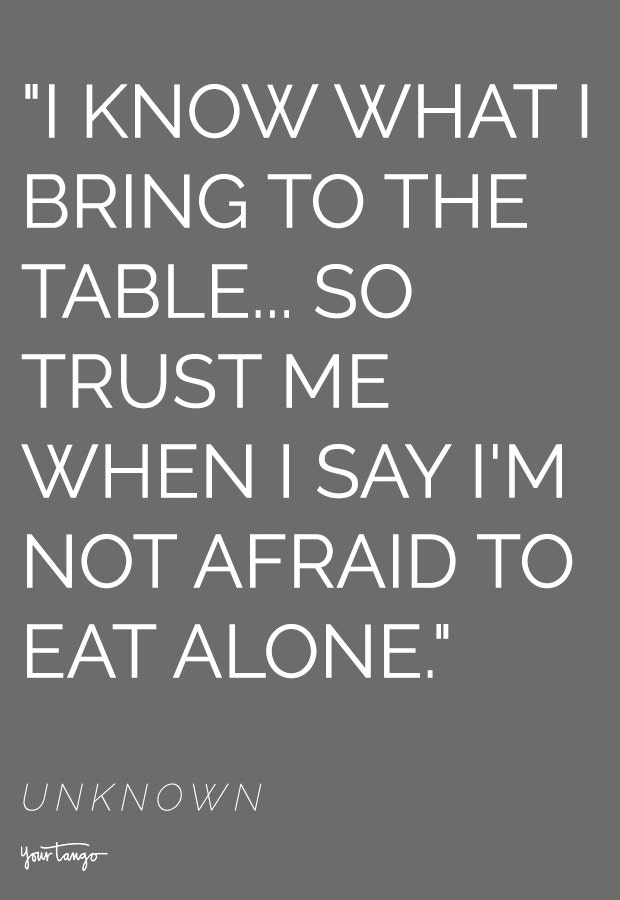 "I know what I bring to the table... so trust me when I say I'm not afraid to eat alone." — Unknown
