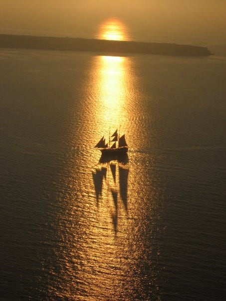 One of my favorite photographs of all time is this ship cutting across the sunset in Oia, Greece.