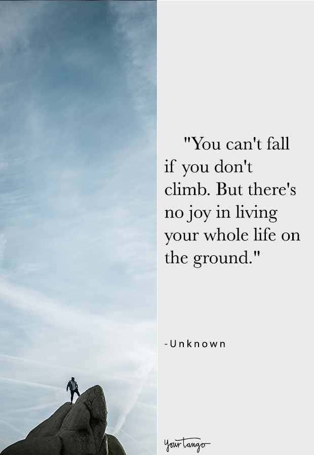 "You can't fall if you don't climb. But there's no joy in living your whole life on the ground."— Unknown