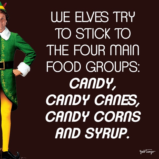 "We elves try to stick to the four main food groups: candy, candy canes, candy corns and syrup."