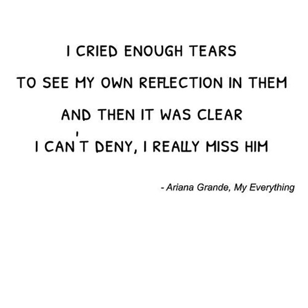 "I cried enough tears to see my own reflection in them. And then it was clear I can't deny I really miss him." — My Everything