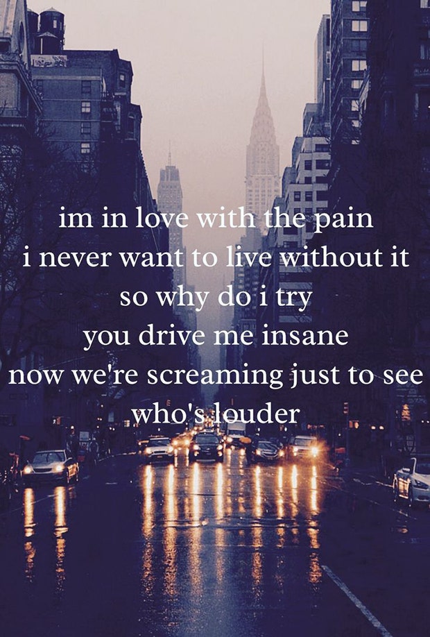 "I'm in love with the pain, I never want to live without it so why do I try. You drive me insane. Now we're screaming just to see who's louder." — Why Try