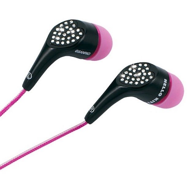 With these jeweled earbud headphones, you'll be able to enjoy the lightweight design and comfortable fit, as well as show others your love and affection for Hello Kitty. A 3.5mm plug fits any audio device, including MP3 players and smartphones.