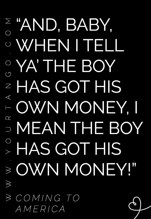 “And, baby, when I tell ya’ the boy has got his own money, I mean the boy has got his own money!” — Coming to America