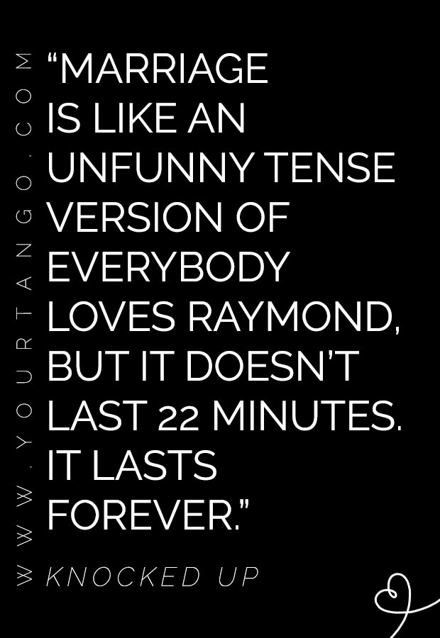 “Marriage is like an unfunny tense version of Everybody Loves Raymond, but it doesn’t last 22 minutes. It lasts forever.” — Knocked Up