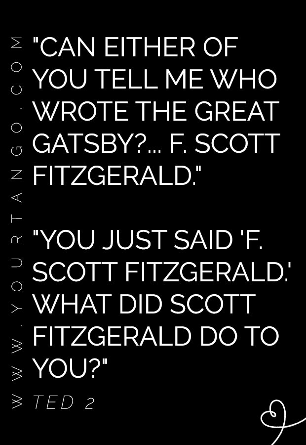 "You just said 'F. Scott Fitzgerald.' What did Scott Fitzgerald do to you?" — Ted, Ted 2