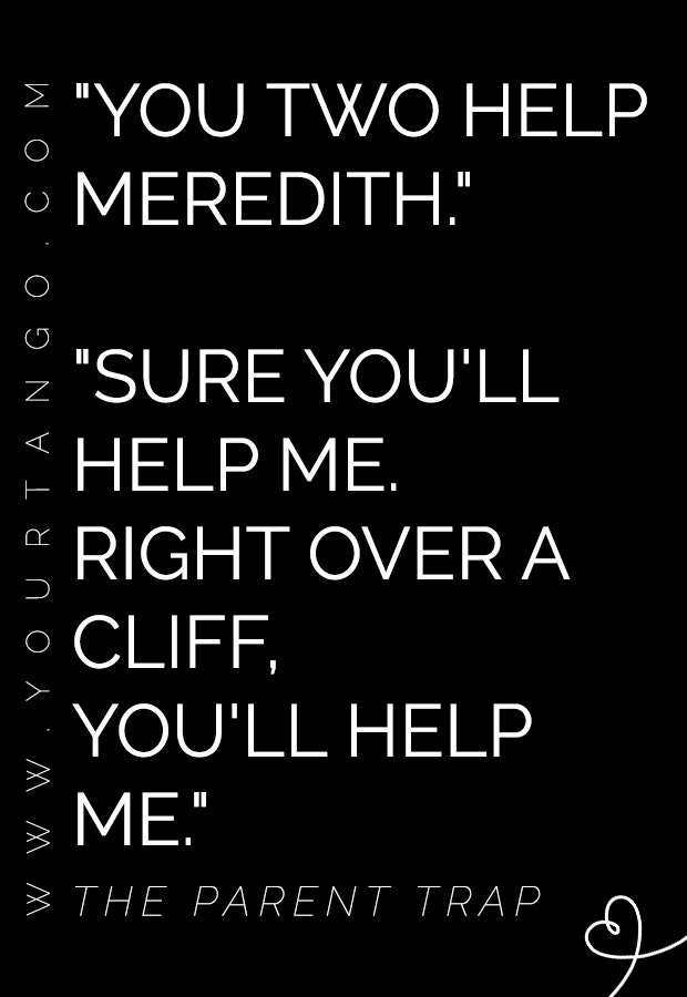 "Sure you'll help me. Right over a cliff, you'll help me." — Meredith Blake, The Parent Trap