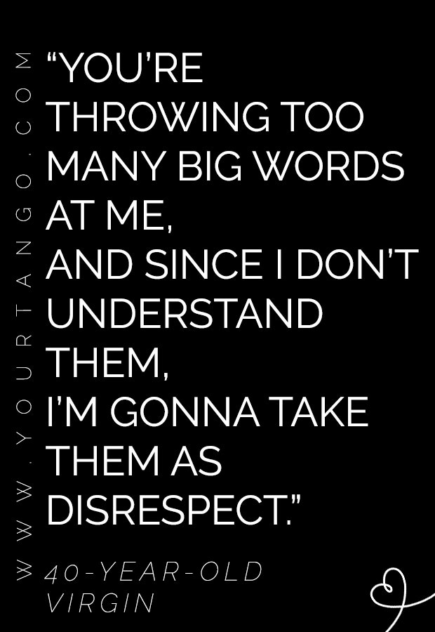 “You’re throwing too many big words at me, and since I don’t understand them, I’m gonna take them as disrespect.” — 40-Year-Old Virgin