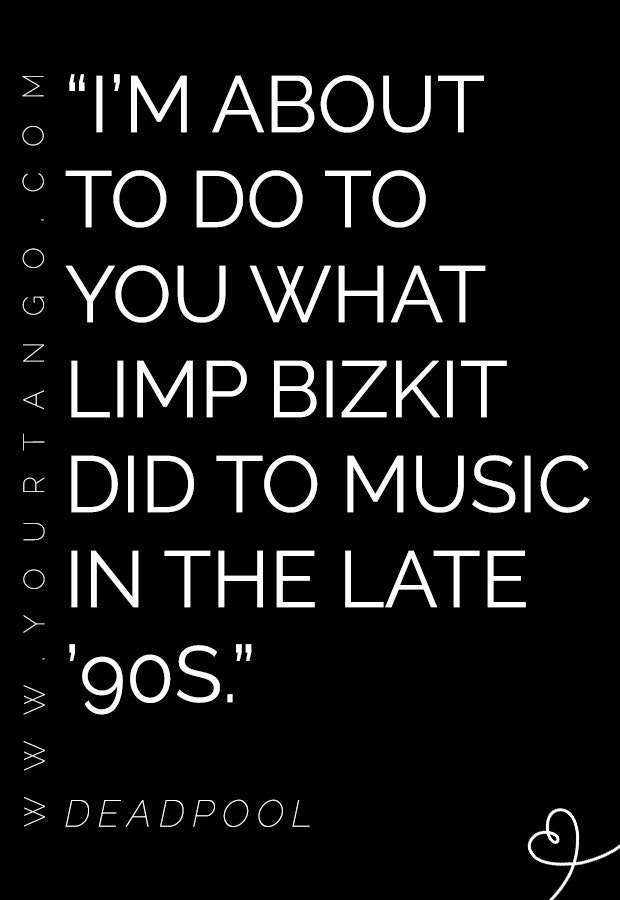 “I’m about to do to you what Limp Bizkit did to music in the late ’90s.” — Deadpool