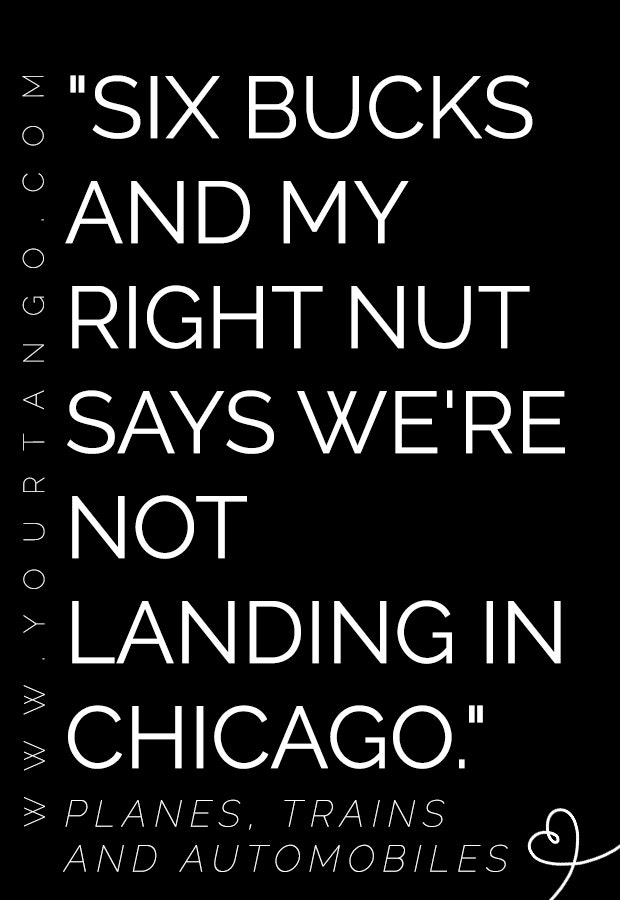 "Six bucks and my right nut says we're not landing in Chicago." — Planes, Trains and Automobiles
