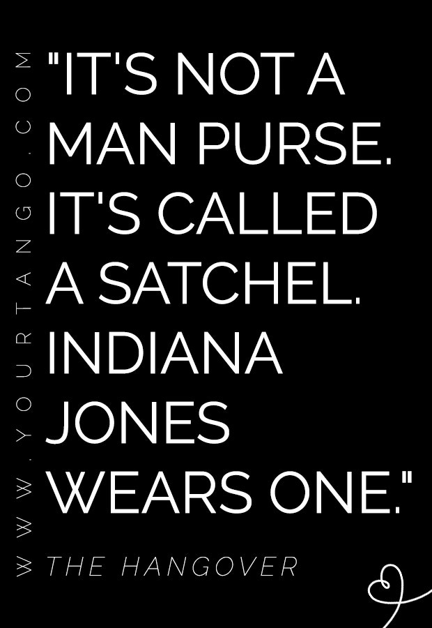 "It's not a man purse. It's called a satchel. Indiana Jones wears one." — The Hangover