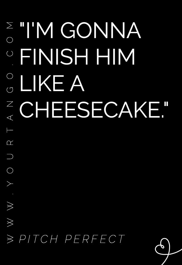 "I'm gonna finish him like a cheesecake." — Pitch Perfect