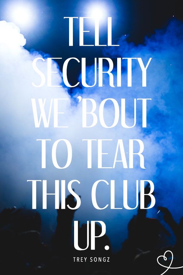 "Tell security we 'bout to tear this club up."