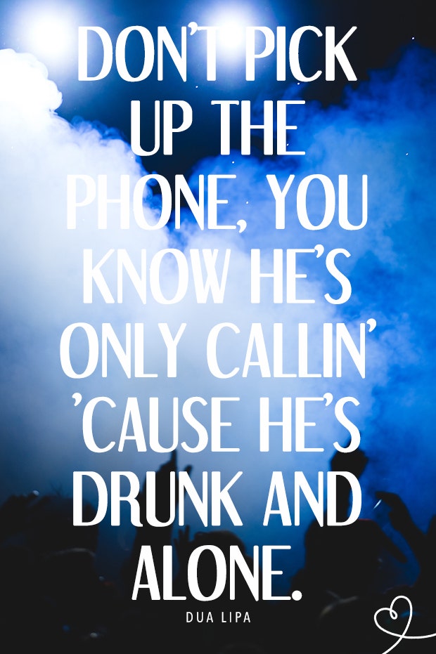 "Don't pick up the phone, you know he's only callin' 'cause he's drunk and alone."