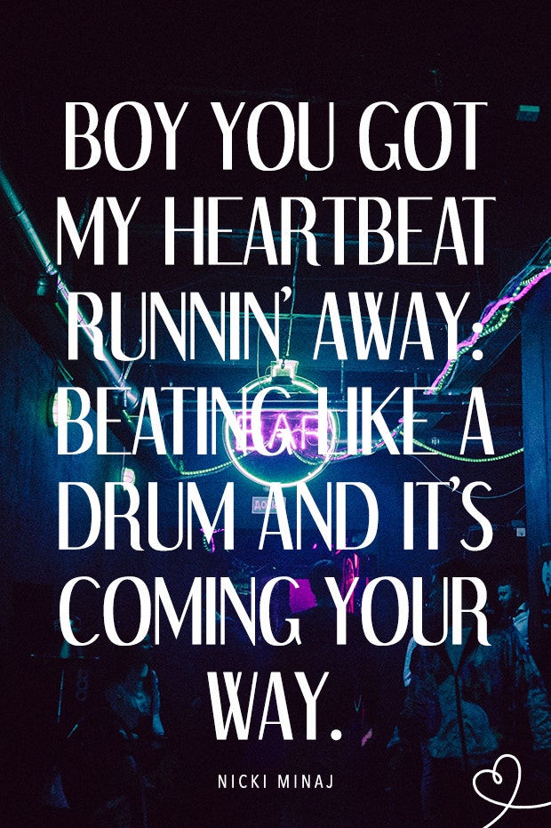 "Boy you got my heartbeat runnin' away: beating like a drum and it's coming your way."