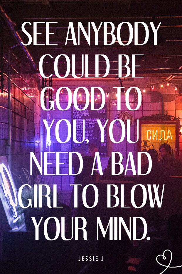 "See anybody could be good to you, you need a bad girl to blow your mind."