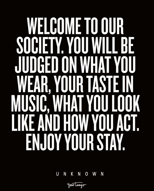 “Welcome to our society. You will be judged on what you wear, your taste in music, what you look like and how you act. Enjoy your stay.” — Unknown