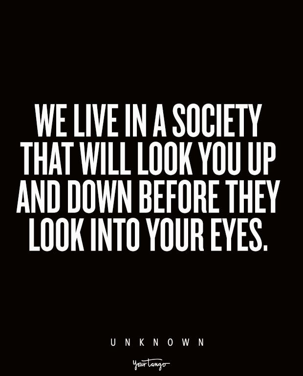 “We live in a society that will look you up and down before they look into your eyes.” — Unknown