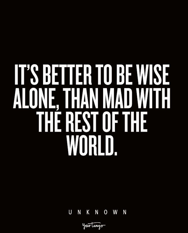 “It’s better to be wise alone, than mad with the rest of the world.” — Unknown