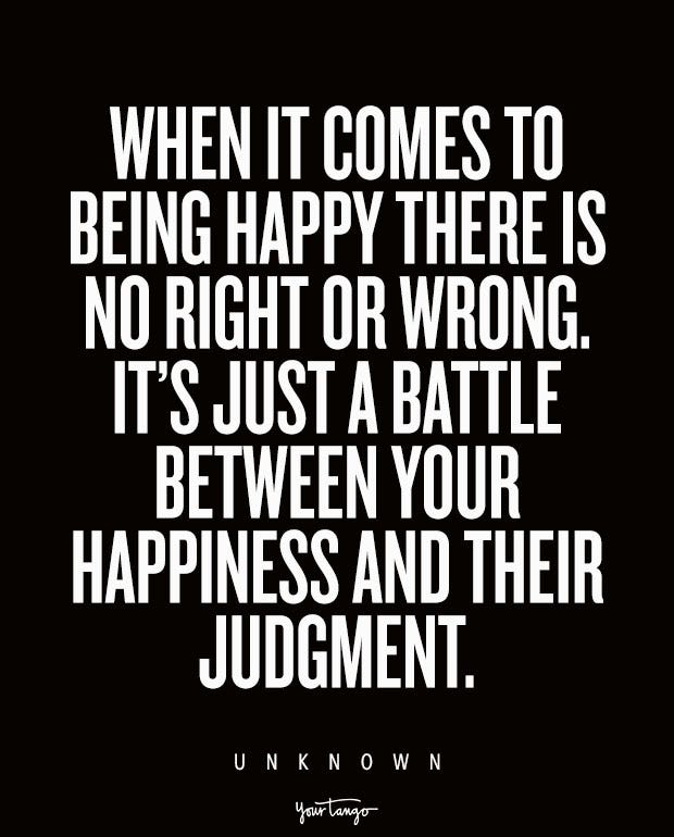 “When it comes to being happy there is no right or wrong. It’s just a battle between your happiness and their judgment.” — Unknown
