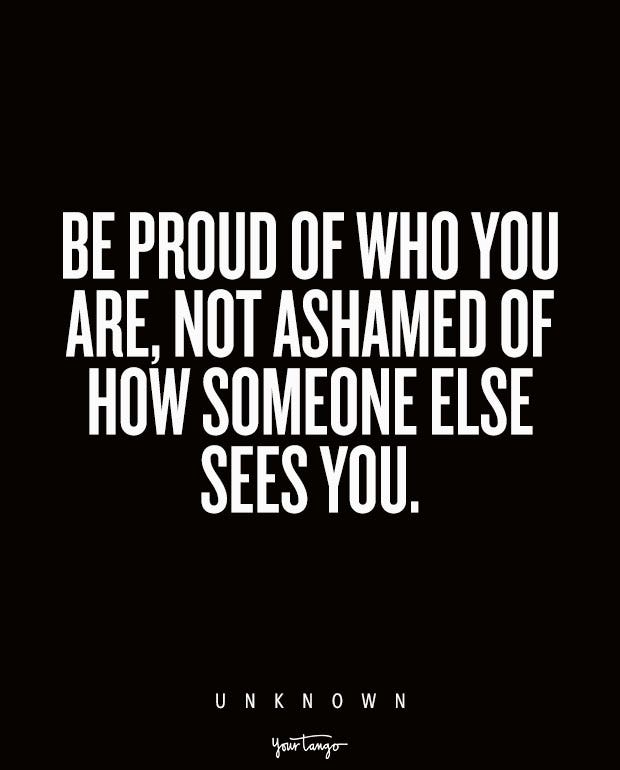 “Be proud of who you are, not ashamed of how someone else sees you.” — Unknown