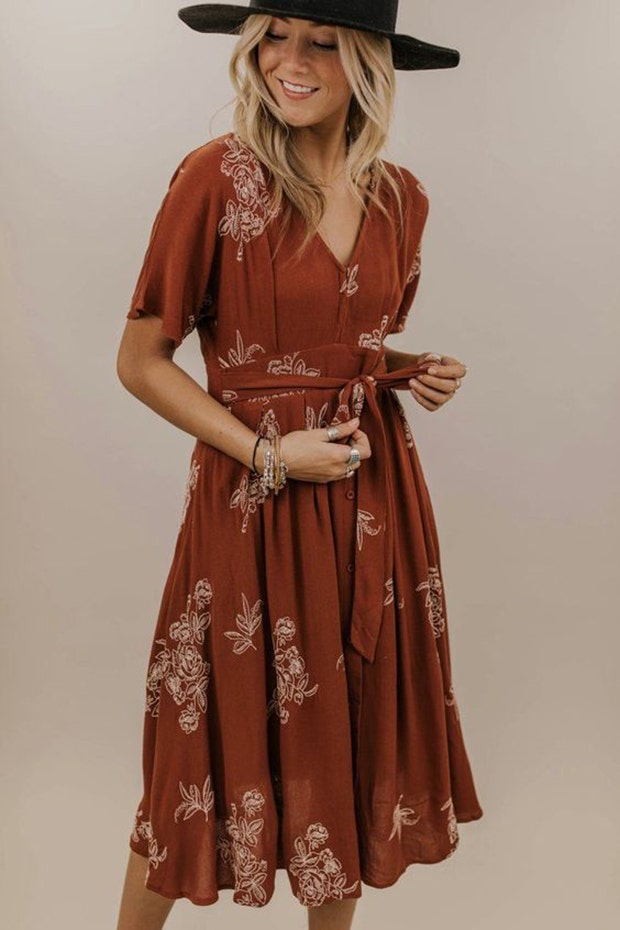 The warm tones in this outfit accentuate a Leo's warm heart and natural cheer, while allowing them to express themselves in subtle ways. The funky sunglasses, cute button skirt, and choice of purse are some defining features that really make this outfit pop, and show that they put thought and effort into getting ready.