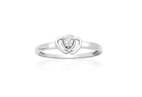 This promise ring is the perfect sign of commitment, as the two hearts intertwine around a single diamond. It's made in sterling silver and meant for everyday use with its understated design.