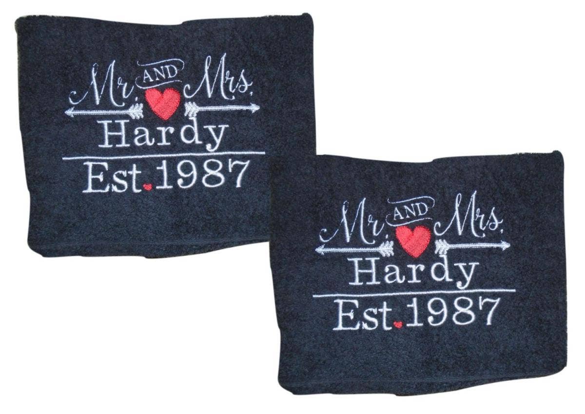 These hand towels are beautifully embroidered with the happy couple's new shared last name and year of marriage. It's the perfect keepsake.