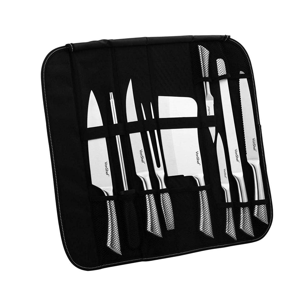 24. VonShef 9 Piece Assorted Kitchen Knife Carry Wrap Set