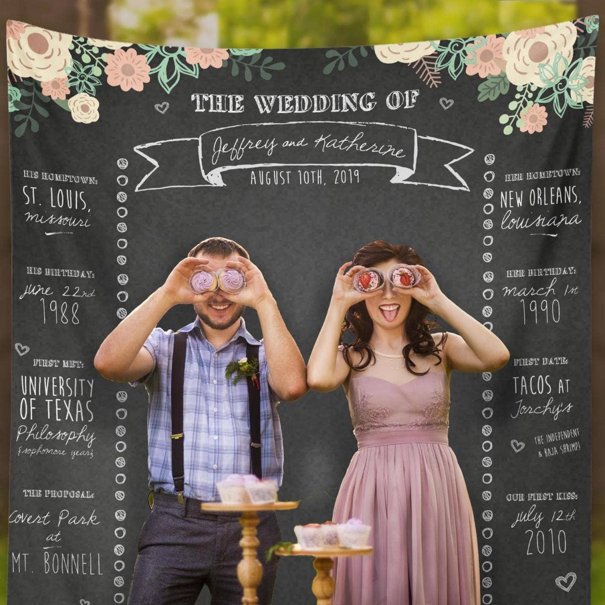 These are easy to find online and let everyone play "bride and groom" for the day. It creates a backdrop, breaks the ice, and makes every photo just a little more fun.