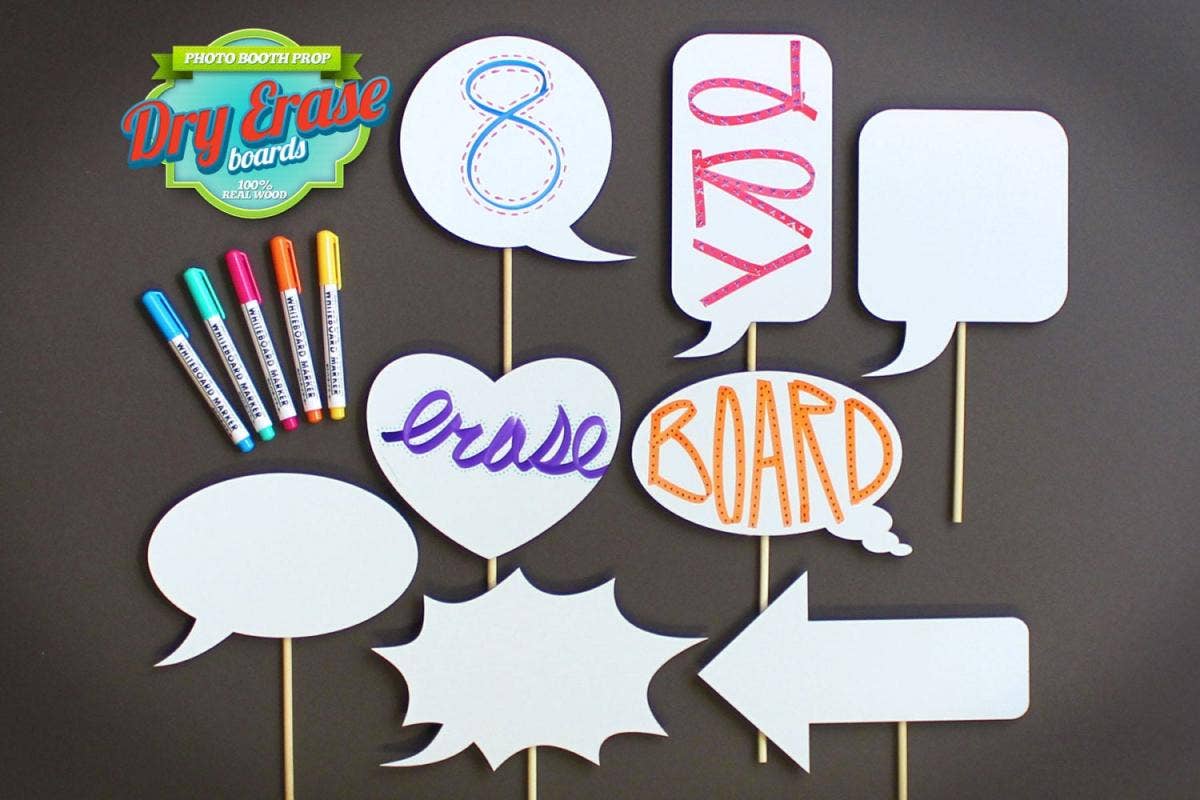 Props are always fun, and what better way to incorporate them into your photo booth than with custom speech bubbles? This way, the photos can “say” anything you want.