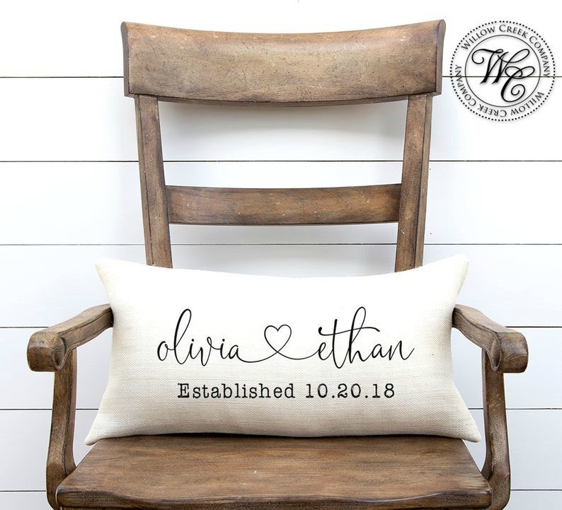 Willow Creek Company's personalized burlap pillow would make the perfect decoration for a home or a rustic wedding decor.