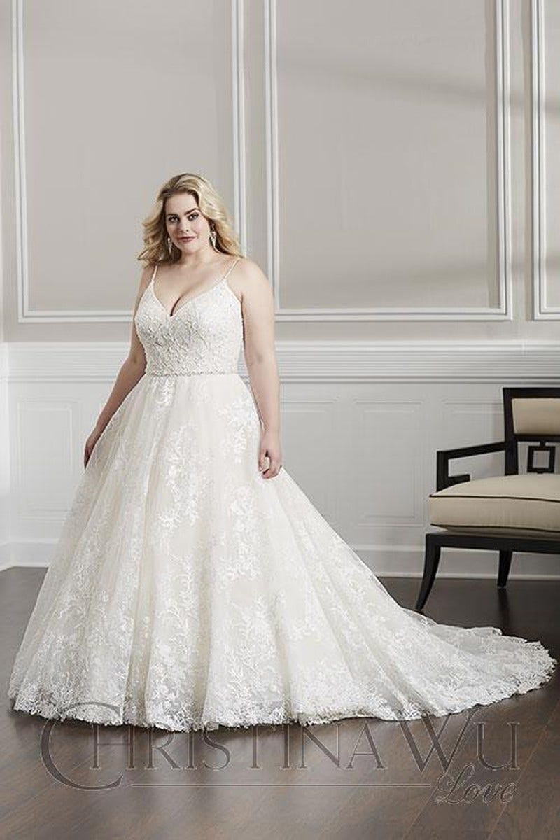 30. Christina Wu Spaghetti Strap Plus Size Wedding Gown