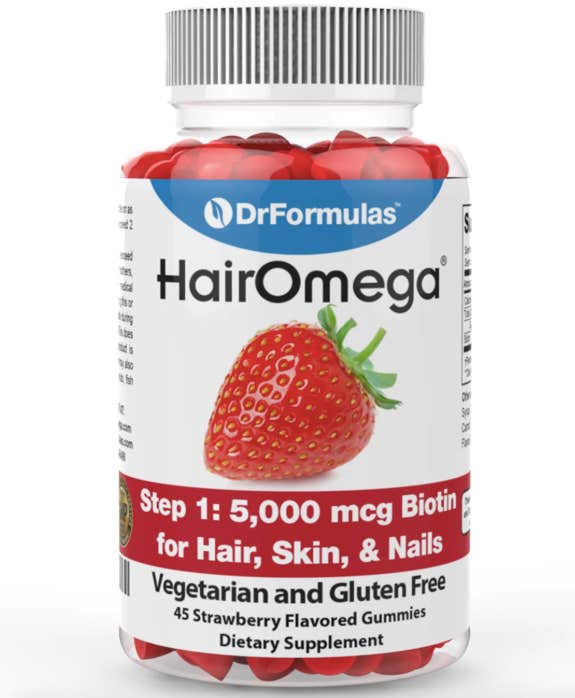 The unique formula of each DrFormulas HairOmega gummy works together synergistically to support thicker, stronger, longer-lasting hair. Just take two gummies from each bottle everyday.